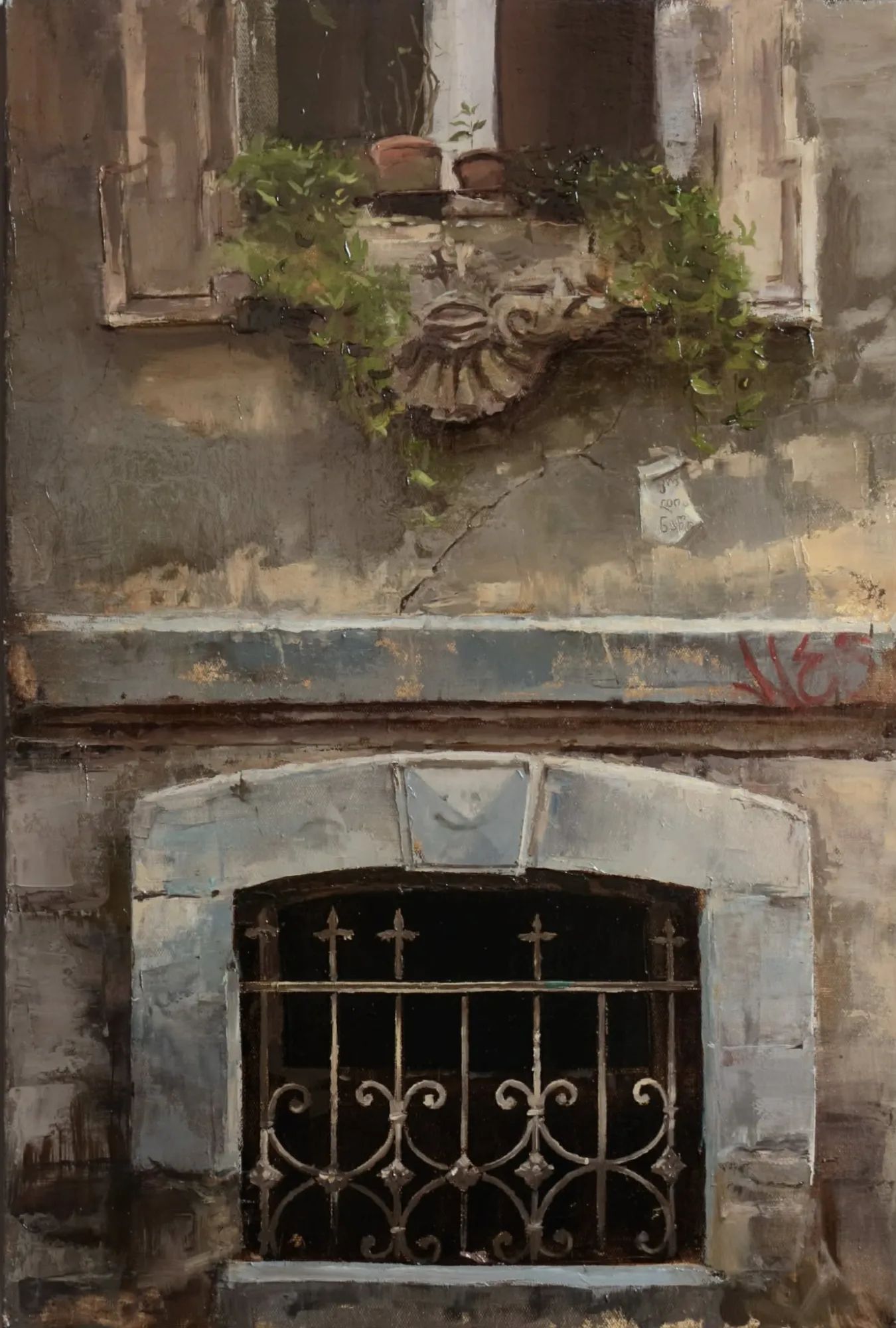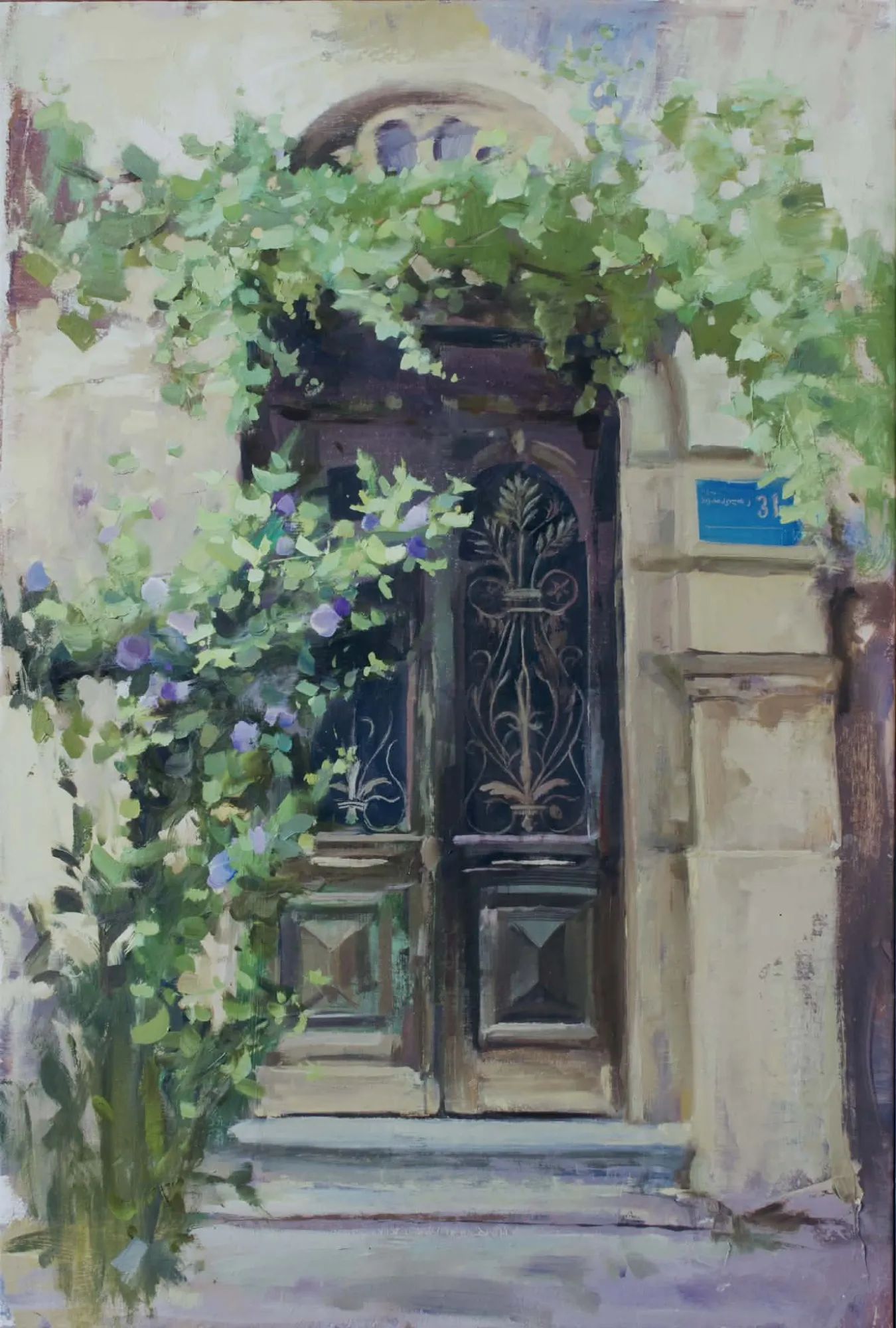 – მანამდე პეიზაჟისტი და პორტრეტისტი ვიყავი. არქიტექტურის ფერწერა, რასაც ჩემს შემოქმედებაში დღეს უკვე დიდი ადგილი უჭირავს, ჩემთვის ახალი ეტაპია და ეს სიახლე ზუსტად თბილისში ცხოვრებას უკავშირდება. თბილისში ვიგრძენი ისტორიული ანაბეჭდის მნიშვნელობა. ჩემთვის განსაკუთრებით საინტერესო გახდა კარი – როგორც პორტალი, რომლის მეშვეობითაც ისტორიულ ადგილებში შედიხარ. ეს შეგრძნება ჩემში უკვე ძალიან ღრმად არის გამჯდარი. შესაბამისად, თბილისის არქიტექტურას ტურისტივით ვეღარ ვუყურებდი. რაც უფრო მეტ დროს ვატარებდი თბილისში, რაც უფრო ხშირად ვათვალიერებდი ძველ შენობებს, მით უფრო დიდ შთაბეჭდილებას ახდენდა ის ჩემზე. ადგილები, რომლებიც რესტავრირებული არ არის და ჯერ კიდევ შენარჩუნებული აქვს წინა ეპოქის სახე, განსაკუთრებით მიმზიდველია – იქ ქალაქის კოლორიტი და „ადამიანების ნაფეხურებია“ შემორჩენილი. მათ რომ ვუყურებ, მთელი არსებით ვგრძნობ, რომ უნდა დავხატო. ეს უბრალო კოპირება არ არის. მე ამაში დიდი კონცეფცია ჩავდე. ვფიქრობ, ადამიანი განსაზღვრავს ლოკაციას არამხოლოდ მაშინ, როცა იქ ცხოვრობს, არამედ სამომავლოდაც. როგორც რემარკი ამბობს, ადგილზე, სადაც ბედნიერი იყავი, ჰაერიც კი იმახსოვრებს შენს სუნთქვას – ეს ღრმა იდეაა. ამ იდეისა და შეგრძნებების დამსახურებით, ჩემს ფერწერაში გადმოვიდა თბილისის არქიტექტურა.