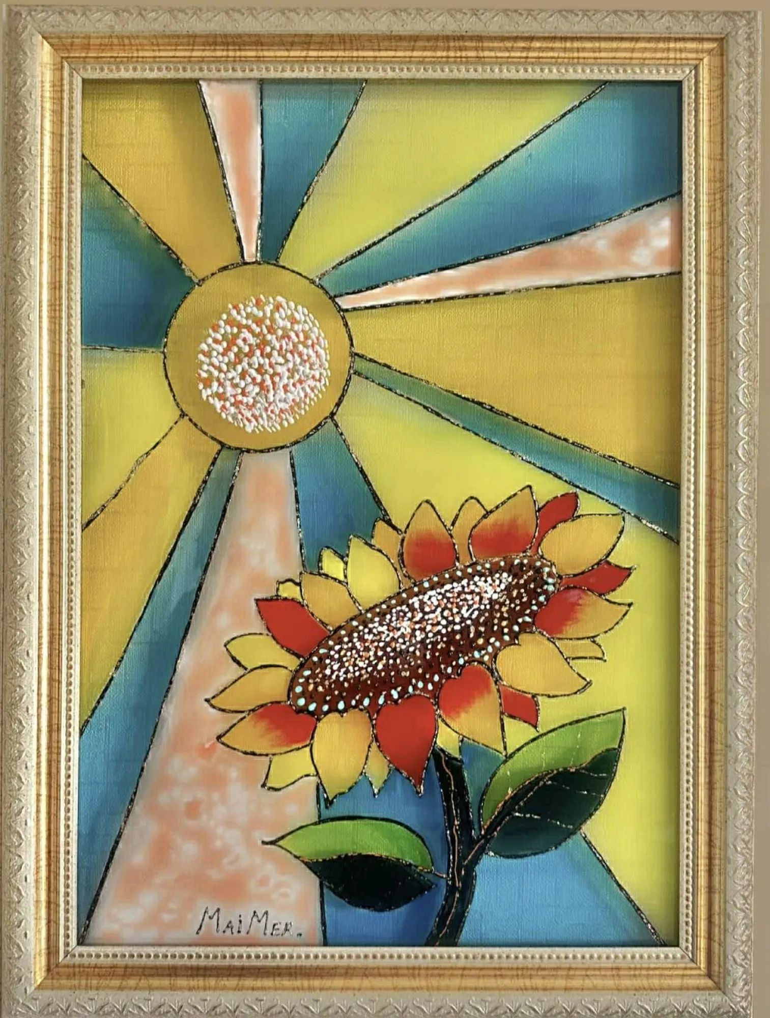 მაია მერაბიშვილი: პროფესიით ისტორიკოსი გახლავართ, პედაგოგი. გარკვეული დრო პედაგოგად ვიმუშავე, მაგრამ ოჯახური პასუხისმგებლობების გამო ვეღარ შევძელი ამ საქმიანობის გაგრძელება. შემდეგ ჩემს ცხოვრებაში რთული პერიოდი დადგა. სრულიად მოულოდნელად, ინფარქტით, ახალგაზრდა მეუღლე გარდამეცვალა – 40 წლის ასაკში. ეს მთელი ოჯახისთვის ძალიან მძიმე გადასატანი იყო. ამ მდგომარეობაში ყველა ახლობელი გვერდში მედგა, მაგრამ ჩემს ტკივილთან მაინც მარტო ვიყავი, რაც ბუნებრივია. ეს ტკივილი ადამიანმა მარტომ უნდა გადაიტანო. ჩემთვის ხელოვნება აღმოჩნდა ერთგვარი თავშესაფარი. ბოლო ხუთი წელია, ვხატავ. არჩევანი მინაზე შევაჩერე. ვხატავდი ტილოზეც, მაგრამ ჩემთვის ვიტრაჟი უფრო ახლობელი გახდა. ვიტრაჟული მონუმენტური ნამუშევრები ყოველთვის განსაკუთრებულად მომწონდა. ბოლო პერიოდში ჩემი მეგობარი დაუახლოვდა ამ მიმართულებას და ეს ჩემთვის შთამაგონებელი აღმოჩნდა.